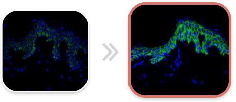 전 대비 늘어난 Collagen 17 단백질(초록색)은