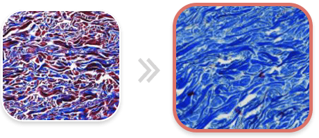 눈에 띄게 증가한 콜라겐(파란색)이