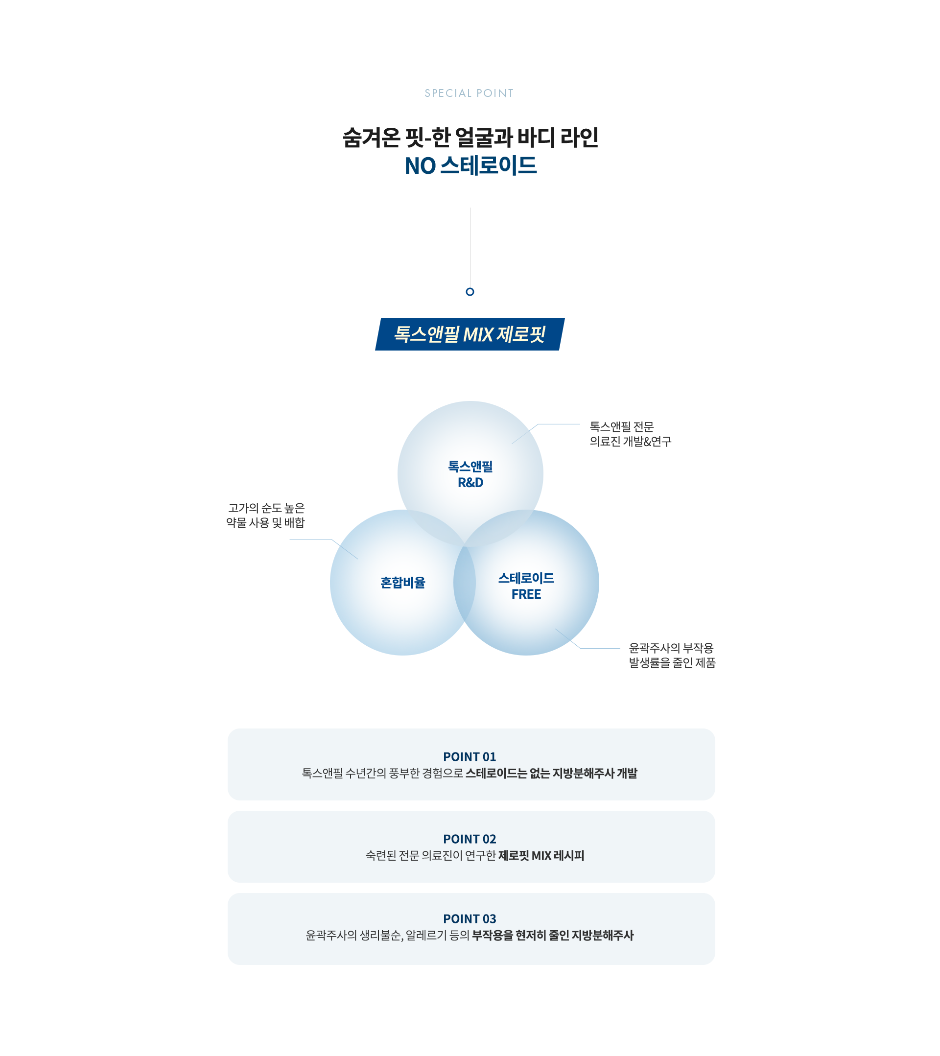 보통 1부위에 3~5cc 정도를 추천합니다. 지방 양과 상태에 따라서 필요한 용량은 달라질 수 있습니다.